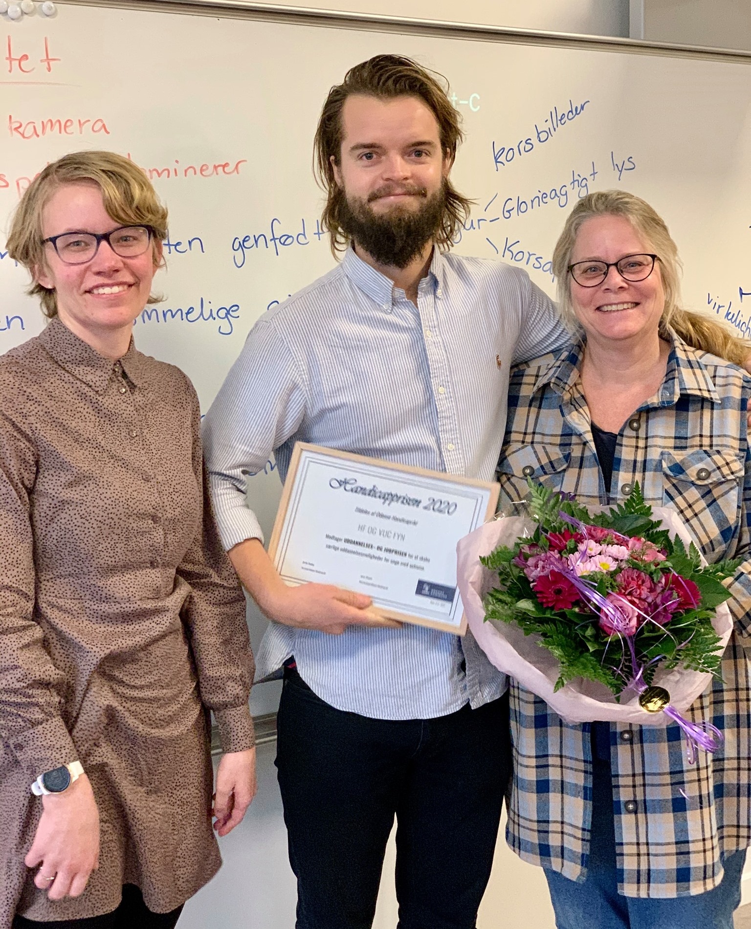 Vi modtog prisen for vores nye HF Autismelinje. På vegne af HF & VUC FYN modtog vejlederne Nikolaj Nørgaard og Dorthe Hansen prisen. Med på billedet er også Sara Mehl Refsgaard Ludvigsen, kursist på autismelinjen.